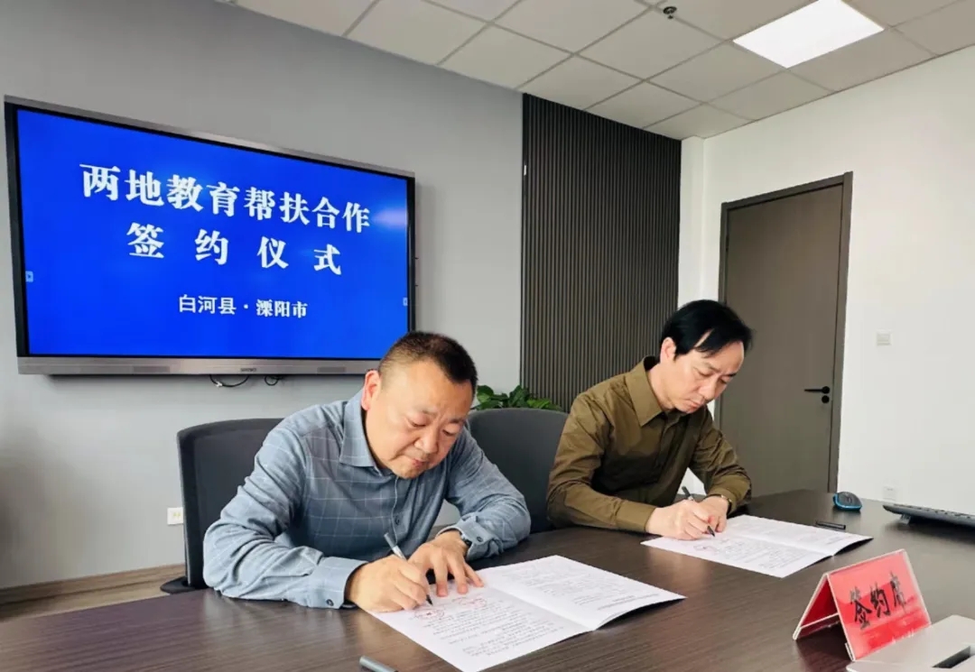 為加強兩地教育領域的深度合作,溧陽市教育局、白河縣教育體育和科技局還共簽了新一輪框架協議。兩地本著優勢互補、資源共享、合作共贏的原則,經過友好協商,達成了幫扶對口學校更新辦學理念、提升管理水平、打造特色課程、優化教師隊伍、改善設施條件、提升學生幸福指數等多項內容的協議。