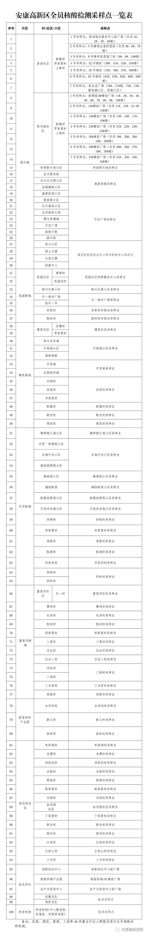 附件:安康高新區全員核酸檢測采樣點一覽表