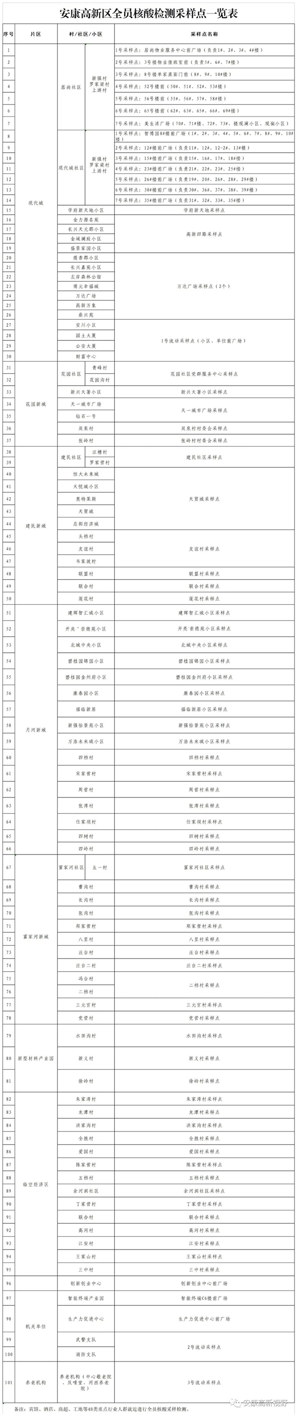 附件:安康高新區全員核酸檢測采樣點一覽表