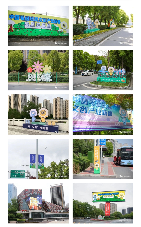 連日來,漫步在安康高新區(qū)的大街小巷,皆是造型可愛、活潑動(dòng)人的“安安康康”毛絨玩具形象,一個(gè)個(gè)造型精致的景觀小品,一幅幅主題鮮明的公益廣告隨處可見,像是“會(huì)說話”的美麗風(fēng)景,將安康“中國毛絨玩具文創(chuàng)產(chǎn)業(yè)新都”的形象傳遞在街頭巷尾,散發(fā)出濃厚的“五一”假日氛圍。