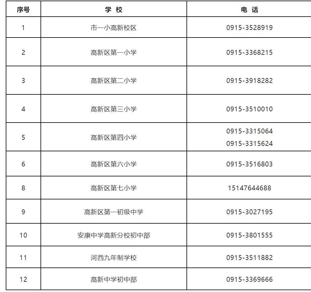 五、安康高新區2023年中小學校招生入學咨詢電話