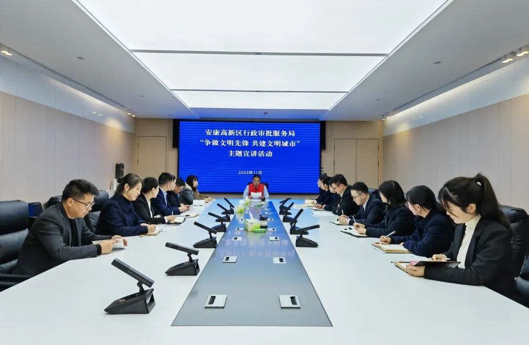 11月17日下午,安康高新區行政審批服務局舉行“我是崇德向上安康人 我為文明安康做代言”宣講活動,活動圍繞“爭做文明有禮人 共創全國文明城”主題開展了敬業奉獻類代言人宣講和展示。