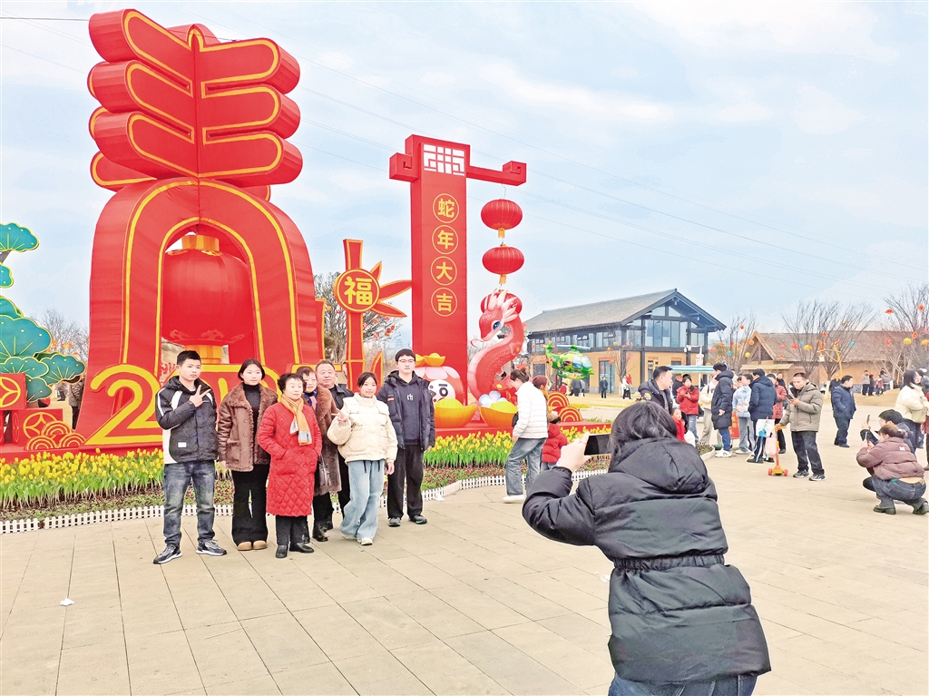 春節假日期間,安康高新區桃花源景區年味兒濃厚。圖為游客在景區巨幅“春”字景觀燈前拍照留影。(陳榮斌 攝)……