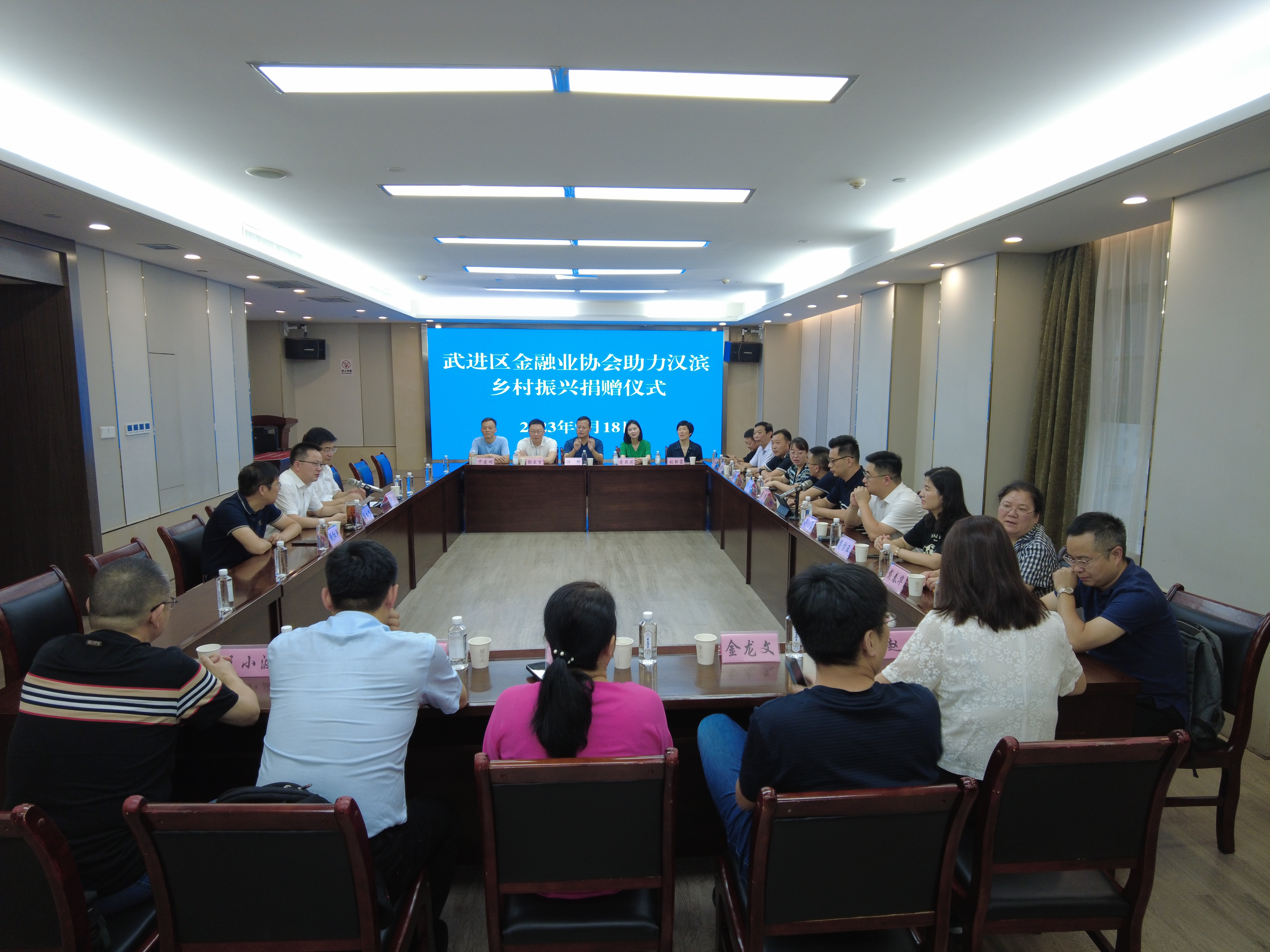 在武進區金融業協會助力漢濱鄉村振興捐贈儀式上,武進區金融業協會向漢濱區捐贈鄉村振興專項資金10萬元。芮云峰對武進區代表團的到來表示歡迎,感謝武進在各方面給予漢濱幫助和支持,有力助推了漢濱經濟社會發展,希望兩地一如既往深化區域協同發展。