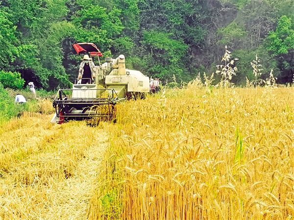 風(fēng)吹麥田千層浪,又到一年收獲時(shí)。在漢濱區(qū)晏壩鎮(zhèn)中心社區(qū)安康客意然農(nóng)業(yè)開(kāi)發(fā)有限公司種植園區(qū)內(nèi),小麥在陽(yáng)光的照耀下,閃著金燦燦的光芒,沉甸甸的麥穗隨風(fēng)搖曳……