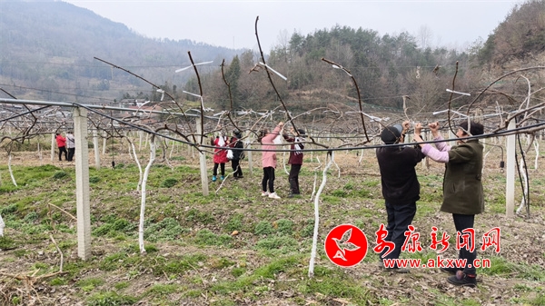本網(wǎng)訊(通訊員 祝志山)眼下,正值春耕備耕的關(guān)鍵時(shí)節(jié),獼猴桃迎來(lái)了春梢生長(zhǎng)發(fā)育的關(guān)鍵時(shí)期,漢陰縣觀音河鎮(zhèn)的2800余畝獼猴桃園內(nèi),數(shù)位工人和果農(nóng)正搶抓農(nóng)時(shí)剪枝綁蔓,抓好春梢管理,為后期促花壯蕾、;ū9、提質(zhì)增產(chǎn)打下良好基礎(chǔ)。