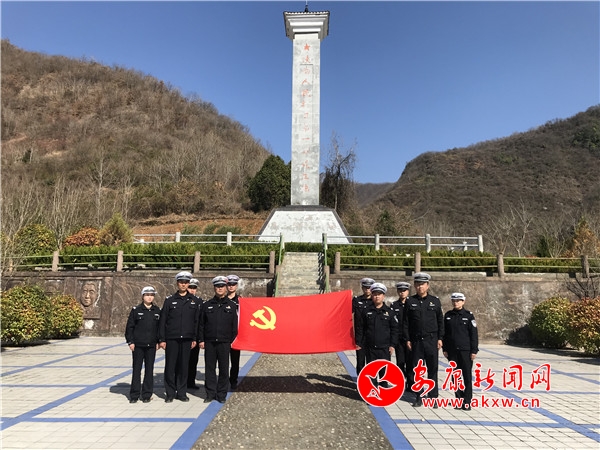 在參觀活動(dòng)中,支部老黨員和年輕黨員、積極分子們一起暢所欲言,認(rèn)真聆聽大隊(duì)教導(dǎo)員講解陜南人民抗日第一軍的簡(jiǎn)要事跡,深情緬懷革命先烈的豐功偉績(jī)。年輕黨員被革命年代共產(chǎn)黨員的無畏獻(xiàn)身精神和為實(shí)現(xiàn)共產(chǎn)主義的堅(jiān)定信仰所震撼,深深體會(huì)到?jīng)]有共產(chǎn)黨就沒有新中國(guó)是永不顛覆的真理,全體黨員政治思想受到了洗禮、政治品格得到了錘煉。參觀紀(jì)念廣場(chǎng)后,全體黨員佩戴徽章,整齊站立在陜南人民抗日第一軍成立地紀(jì)念碑下,共同緬懷革命烈士,隨后面對(duì)中國(guó)共產(chǎn)黨黨旗重溫了入黨誓詞,并向黨組織作出了莊嚴(yán)承諾,將始終堅(jiān)定政治信念,勇敢擔(dān)當(dāng)作為,認(rèn)真遵守政治紀(jì)律和政治規(guī)矩,切實(shí)履行好新時(shí)代人民公安職責(zé)使命,以優(yōu)異成績(jī)向建黨100周年獻(xiàn)禮。