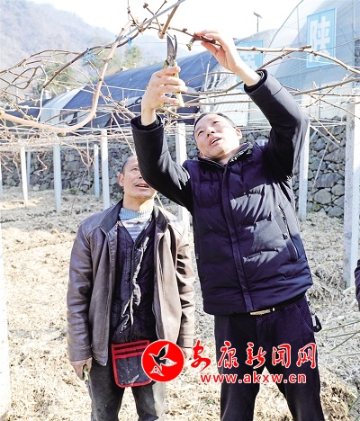 陳國(guó)富2019年在金珠溝村種植獼猴桃,他除了有150畝老園區(qū)外,還新建了100畝獼猴桃新園區(qū),去年獼猴桃已取得了初步的經(jīng)濟(jì)效益。進(jìn)入冬天,獼猴桃樹(shù)上葉子完全掉落后,他就開(kāi)始進(jìn)行修剪,現(xiàn)在接續(xù)的是去年未完成的工作。
