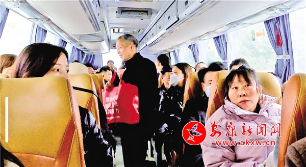 2月2日上午,在縣人社局發車現場,兩輛大巴一字排開,經工作人員清點完人數確認無誤后,返崗務工人員們帶著行李有序上車。