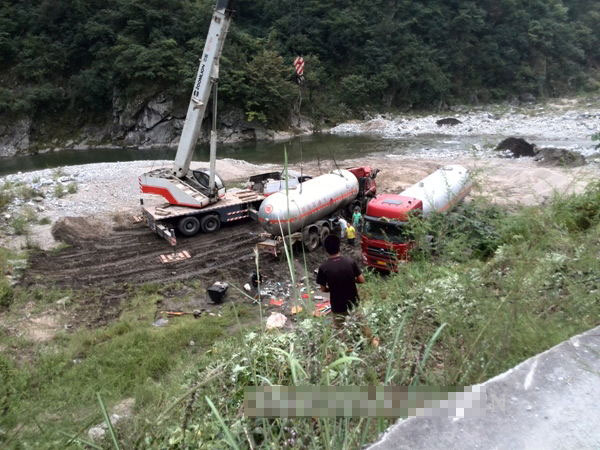 8月27日,一輛液化氣重型罐車由西安駛往安康,途徑210國道寧陜縣江口鎮內時,由于雨天路滑在一急轉彎處發生意外,車翻滾入路外的河灘里,車輛受損乘員嚴重受傷,……