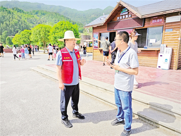 游客需要什么,黨員就做什么!今年“五一”期間,全鎮設立4個固定服務崗、30個流動服務點,配備2支摩托巡邏隊和200名志愿者,形成“點線面”結合的服務網絡。同時運用“智慧監管云平臺”,整合無人機巡查、AI人流監測等技術手段,實現景區客流精準調控,贏得了廣大游客的爭相稱贊。