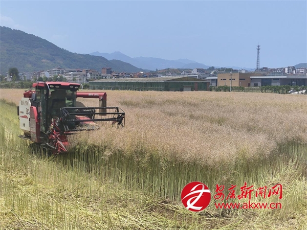 5月19日,石泉縣池河鎮五愛村油菜種植基地里,大型聯合收割機正進行采收作業。池河鎮今年種植油菜8600畝,已全部成熟并有序組織搶收。當地大力推廣機械化作業,既提升采收效率,又能實現秸稈還田,有效解決焚燒秸稈問題。(通訊員 王朋) Z4e安康新聞網