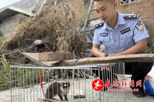 當(dāng)日中午,呂河派出所接到群眾報(bào)警稱,“在其家中鐵籠里關(guān)了一只像果子貍的野生動(dòng)物,請求幫助。”接警后,值班民警迅速帶隊(duì)前往處置。到達(dá)現(xiàn)場后,民警看到了這只“不速之客”,是一只灰褐色皮毛的小動(dòng)物,臉?biāo)坪焖曝i,花白面,時(shí)不時(shí)上躥下跳,身體狀況還不錯(cuò)。民警經(jīng)過仔細(xì)比對和觀察,并經(jīng)林業(yè)部門工作人員確認(rèn),發(fā)現(xiàn)該動(dòng)物并非果子貍,而是一只鼬獾,屬于國家三級(jí)保護(hù)動(dòng)物。