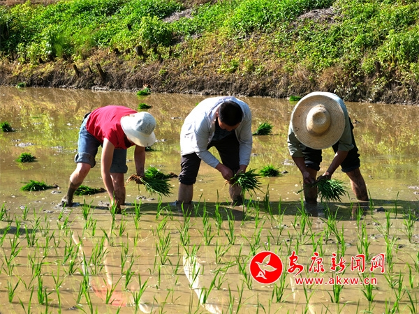 在王家坪、樓房村隨處可見稻田里村民們犁田翻耕、分秧、運秧、插秧忙農耕的身影。