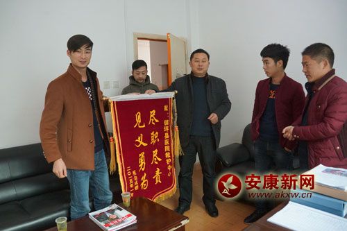 安康新網訊(通訊員 杜波兒 楊云波)1月19日下午,鎮坪縣醫院辦公室中一片喜氣,四位年青人感激地將一面寫著 “盡職盡責、見義勇為”的錦旗交到該院院長潘益山……