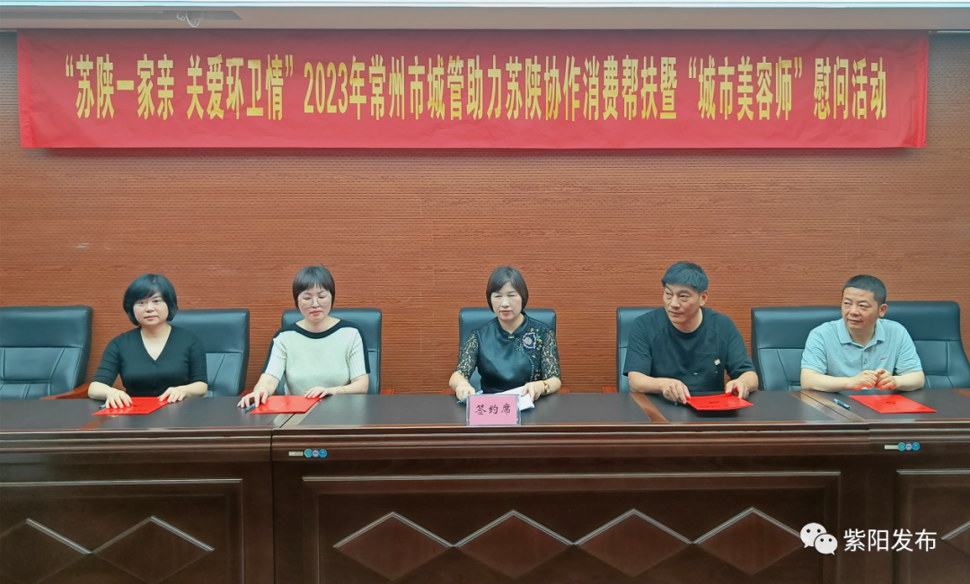 活動上,紫陽縣蘇秦農產品專業合作社向常州市環衛工人捐贈了10000斤紫陽大米作為慰問品,并與10家企事業單位簽訂了消費幫扶產品購銷意向協議。