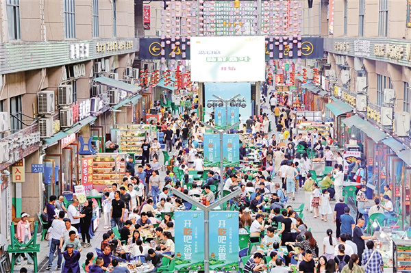 “五一”期間,紫陽縣紫邑新城美食街區開展了特色文旅活動,吸引游客紛至沓來。 鄭曉虎 攝