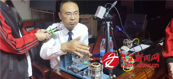 講座的亮點之一是關于“三相交流鼠籠式異步電動機”的現場實驗展示。嵇教授首先通俗易懂地闡釋了該類型電動機作為現代工業核心的重要地位及基本原理,隨后現場演示實驗過程,逐步解析其內部結構、旋轉磁場的形成機制,以及“鼠籠”轉子實現電能與機械能高效轉換的原理。抽象難懂的電磁學知識,在直觀的演示與生動的講解中變得清晰可感。嵇教授還引導同學們思考該項技術在各行各業的廣泛應用,切身感受科技對社會發展的深遠影響。這一環節有效激發了同學們對工程技術的興趣與對科學原理的探索熱情。