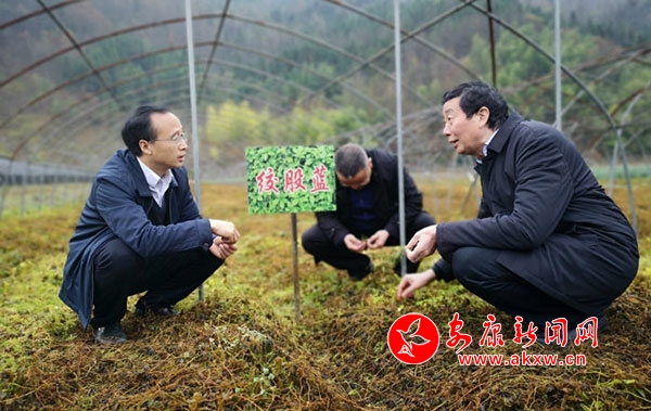 魯琦先后深入平利縣老縣鎮、城關鎮和廣佛鎮,了解北醫大絞股藍基地、興強富硒茶葉(絞股藍)公司、秦漢古茶、東山寨魔芋產業發展情況。在北醫大絞股藍種源基地,魯琦在田間地頭同有關方面負責人一起憶歷程、談現狀、話未來,他指出,要認真總結平利絞股藍產業的發展經驗,切實針對市場需求,有效挖掘“中國絞股藍原產地”“絞股藍之父”“中國馳名商標”品牌效益,積極爭取絞股藍“食藥同源”盡快獲批,不斷加大產品研發、種源培育、規;N植力度,拓寬營銷渠道,全力唱響“全國富硒絞股藍生產第一縣”金字招牌。
