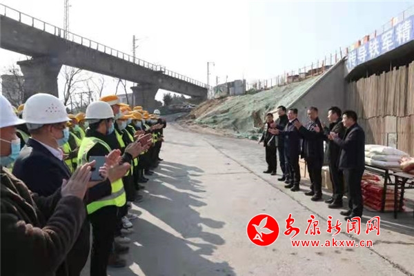 在北環(huán)線施工現(xiàn)場,高晶華指出,北環(huán)線建設(shè)是拉大城市骨架、提升通行順捷、疏解城市壓力的控制性工程。項目開工以來,大家心懷筑路夢,不畏艱與辛,主體工程推進(jìn)順利,市委、市政府和全市人民對你們表示敬重和感謝。希望大家搶抓時機,排除困難,保障質(zhì)量,安全施工,確保如期建成通車。