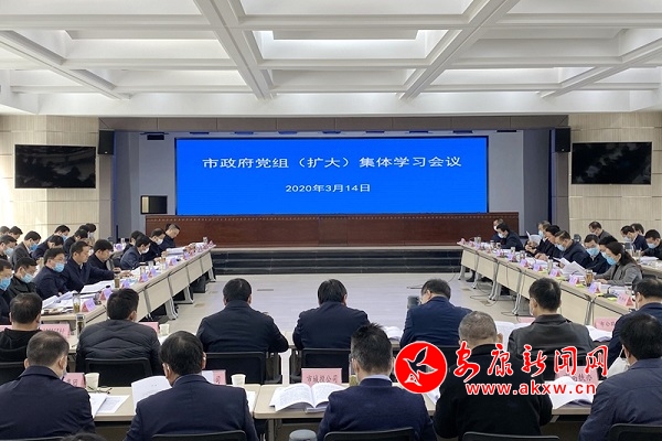 本網(wǎng)訊(通訊員 安政軒) 3月14日上午,市政府黨組書記、市長趙俊民主持召開市政府黨組(擴(kuò)大)集體學(xué)習(xí)會(huì)議,傳達(dá)學(xué)習(xí)3月4日中央政治局常委會(huì)會(huì)議精神,習(xí)近平在決戰(zhàn)決勝脫貧攻堅(jiān)座談會(huì)上的講話、在北京考察新冠肺炎防控科研攻關(guān)和在湖北省考察新冠肺炎疫情防控工作主要精神,近期國務(wù)院常務(wù)會(huì)議精神,李克強(qiáng)對(duì)森林草原防滅火工作的重要批示,以及全省決戰(zhàn)決勝脫貧攻堅(jiān)推進(jìn)會(huì)、全省穩(wěn)就業(yè)工作電視電話會(huì)、全市脫貧攻堅(jiān)成果鞏固提升推進(jìn)會(huì)主要精神;組織學(xué)習(xí)習(xí)近平向全國各族各界婦女同胞致以的節(jié)日問候,重要文章《全面提高依法防控依法治理能力 健全國家公共衛(wèi)生應(yīng)急管理體系》,以及中共中央、國務(wù)院《關(guān)于深化醫(yī)療保障制度改革的意見》,國務(wù)院《關(guān)于授權(quán)和委托用地審批權(quán)的決定》,中辦、國辦《關(guān)于構(gòu)建現(xiàn)代環(huán)境治理體系的指導(dǎo)意見》《關(guān)于組織開展復(fù)工復(fù)產(chǎn)情況調(diào)研的通知》,國辦《關(guān)于進(jìn)一步精簡審批優(yōu)化服務(wù)精準(zhǔn)穩(wěn)妥推進(jìn)企業(yè)復(fù)工復(fù)產(chǎn)的通知》《關(guān)于生態(tài)環(huán)境保護(hù)綜合行政執(zhí)法有關(guān)事項(xiàng)的通知》,國家二十三部委《關(guān)于促進(jìn)消費(fèi)擴(kuò)容提質(zhì)加快形成強(qiáng)大國內(nèi)市場的實(shí)施意見》,省委、省政府《關(guān)于抓好“三農(nóng)”領(lǐng)域重點(diǎn)工作確保如期實(shí)現(xiàn)全面小康的實(shí)施意見》《陜西省宗教事務(wù)條例》,市委《關(guān)于做好易地搬遷后續(xù)扶持發(fā)展工作的指導(dǎo)意見》《關(guān)于脫貧攻堅(jiān)成果鞏固提升行動(dòng)的實(shí)施意見》等文件,聽取了全市經(jīng)濟(jì)運(yùn)行情況匯報(bào)。