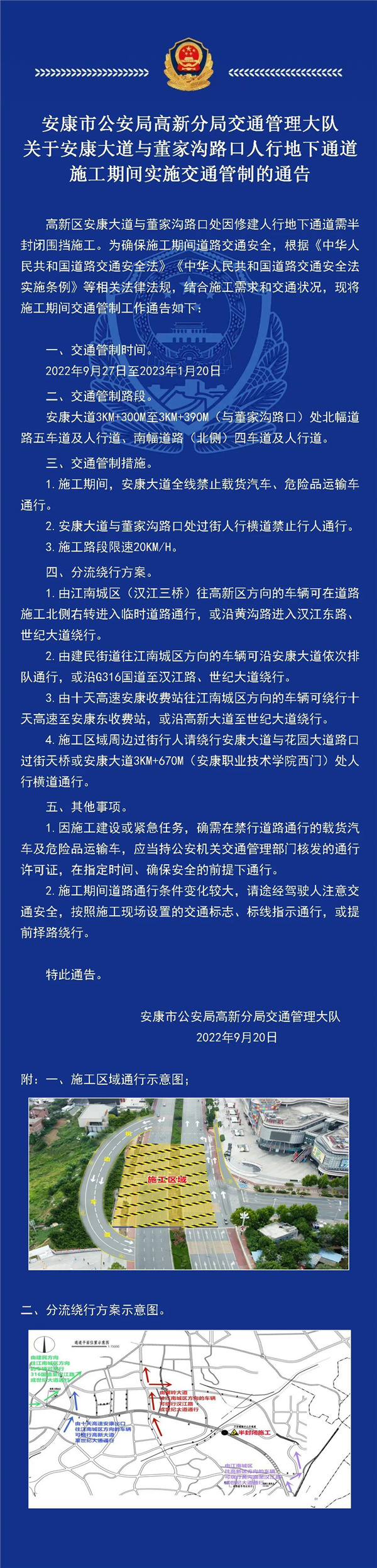 注意!9月27日起,安康大道與董家溝路口人行地下通道施工期間實施交通管制