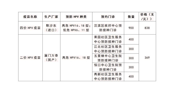 (4)本次僅有二價、四價HPV疫苗,數量有限,生產企業后續將會逐批供應,請耐心等待;可關注【漢濱疾控】微信公眾號,及時了解預約消息。