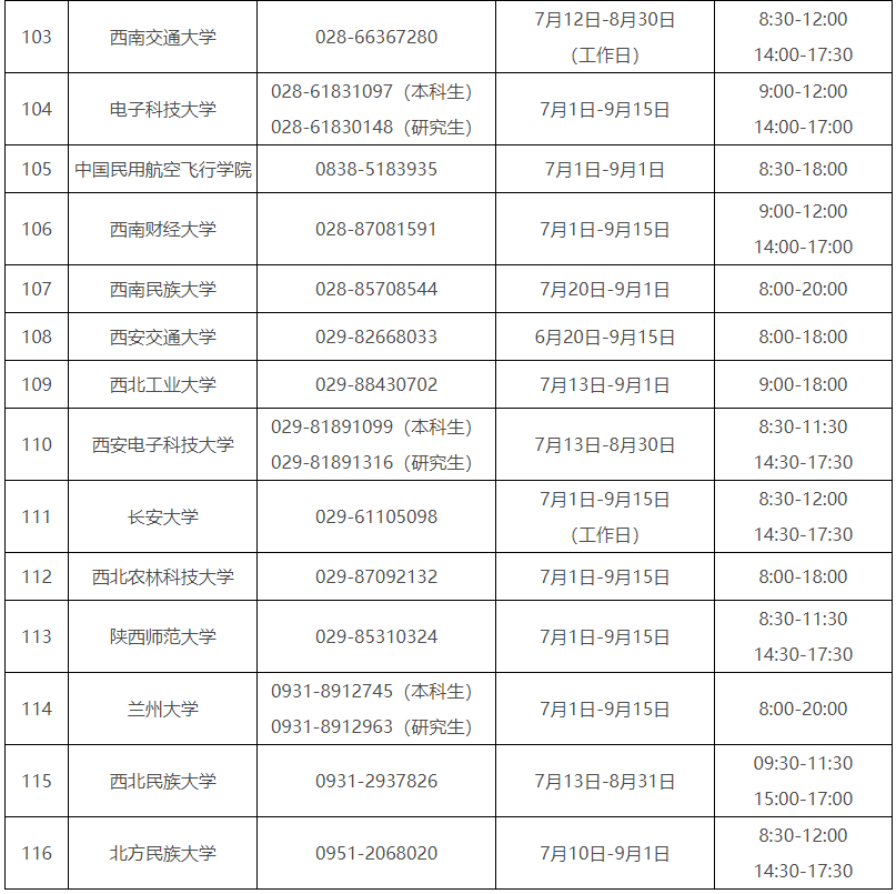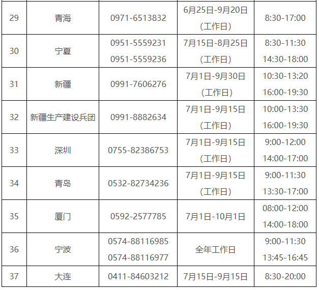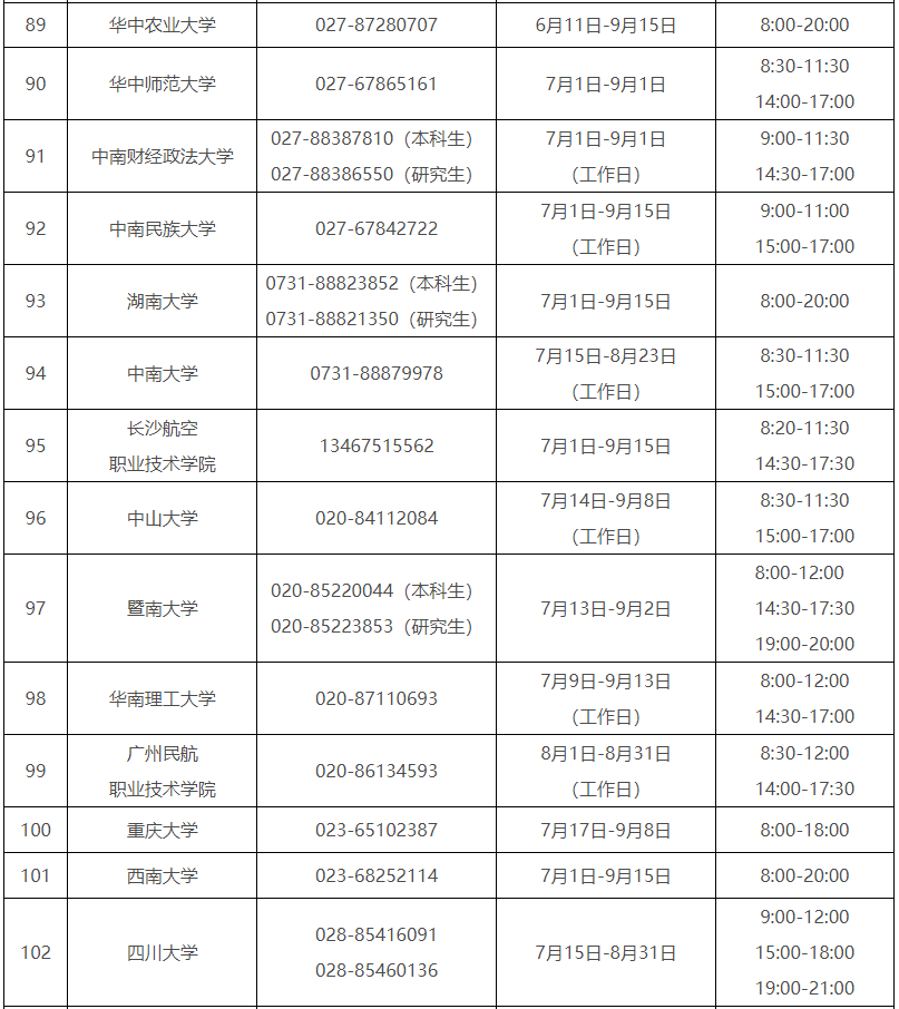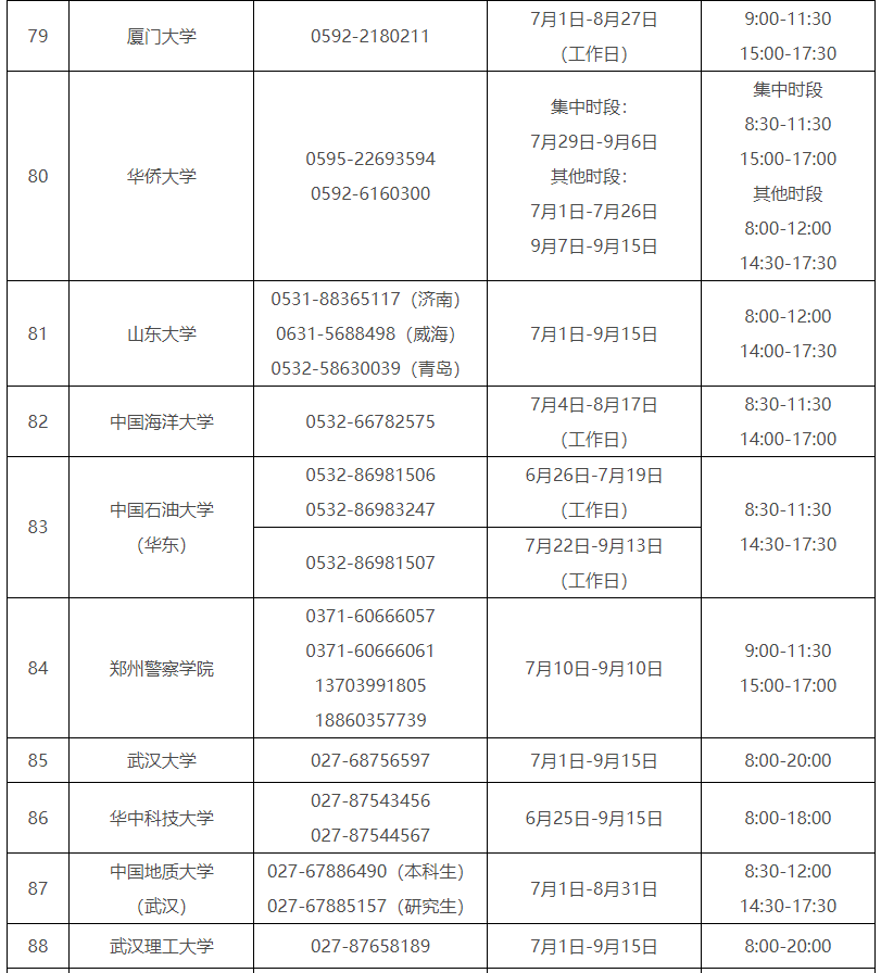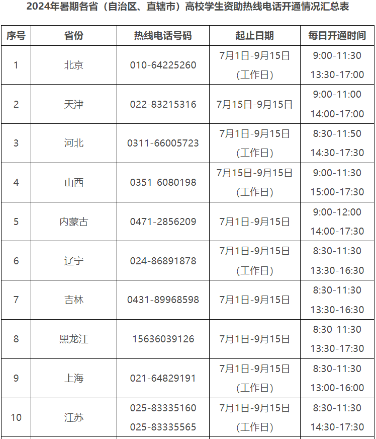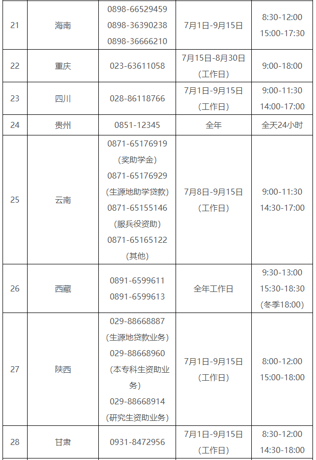 各。ㄗ灾螀^、直轄市)和中央部門所屬高校同步開通了熱線電話,電話號碼與開通時間可查看匯總表。