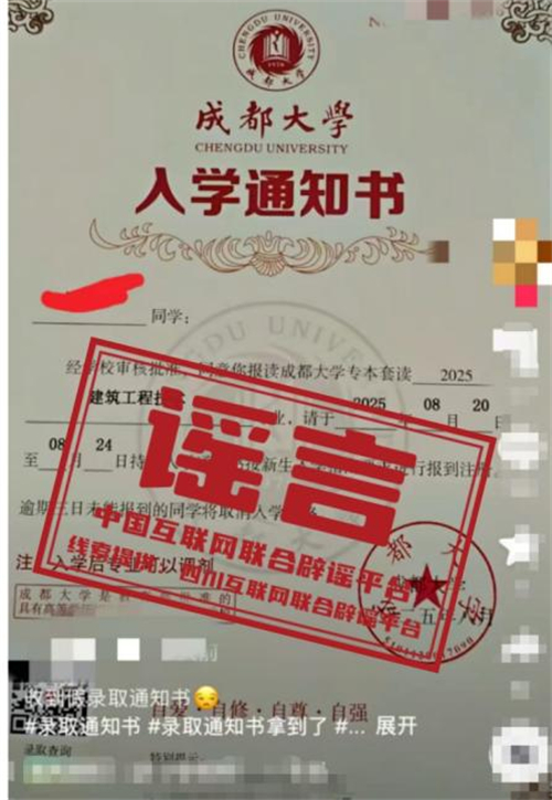 教育部多次提醒,部分機構和個人打著普通高等學歷教育幌子,實際卻為自考助學、網絡教育等其他教育形式,或進行虛假宣傳。如未通過高考招生錄取獲得正式通知書,無法注冊普通高校正式學籍,也無法取得普通高等學校學歷證書。考生及家長應通過正規渠道核驗錄取信息,嚴格保護個人信息,防止被不法分子利用。(來源:四川互聯網舉報辟謠平臺、成都網絡辟謠)