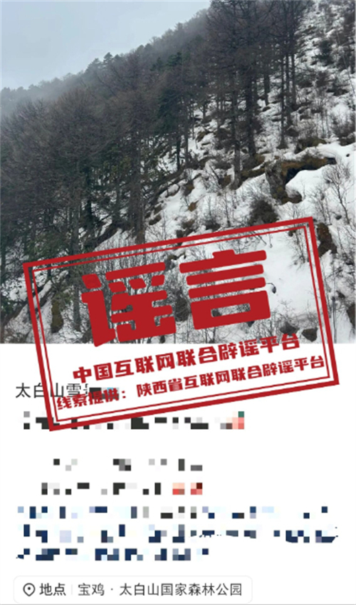 真相:近日,有網民發帖稱“陜西太白山迎來今秋第一場大雪”,并曬出視頻畫面,山林間白雪紛飛,屋檐上覆蓋著薄雪。相關視頻引發關注,有網民表示立即前往景區賞雪。對此,景區工作人員回應稱,網傳視頻為往年下雪場景,目前太白山正在下大雨,景區已經關閉。提醒游客出行前應關注景區的實時公告與天氣情況,以免受虛假信息誤導。(來源:陜西省互聯網聯合辟謠平臺、@上游新聞)