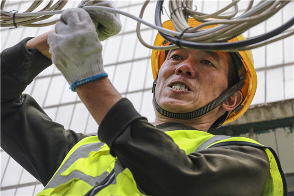 7月23日,聯通在張嶺街道進行網線清理整治。(郭曉康)