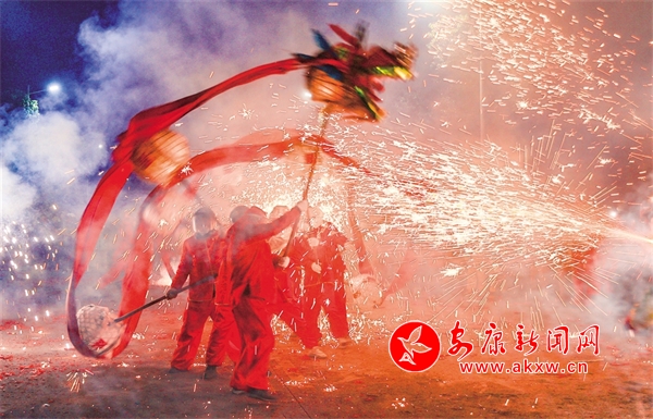 五里工業園區的“燒火龍”表演蔚為壯觀。李成寶 攝