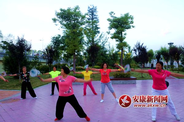 夕陽余暉,在安康中心城區,一江兩岸公園成為市民納涼避暑休閑的好去處。有聚集跳廣場舞的,有吹拉彈唱的,有散步聊天的……豐富多彩的盛夏生活市民其樂融融。