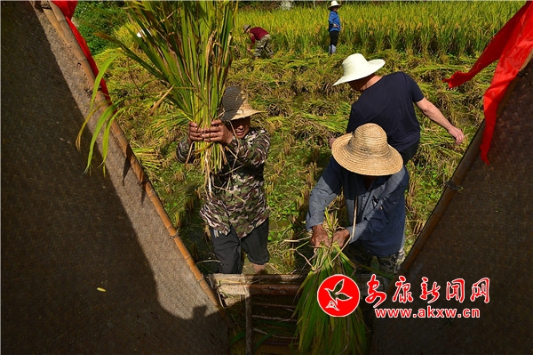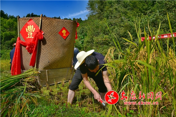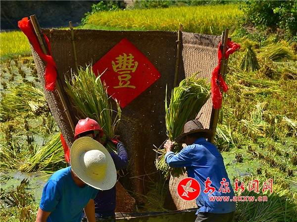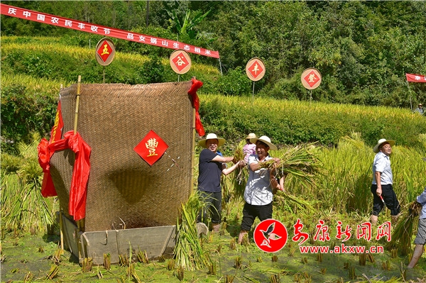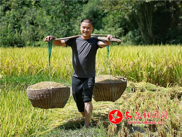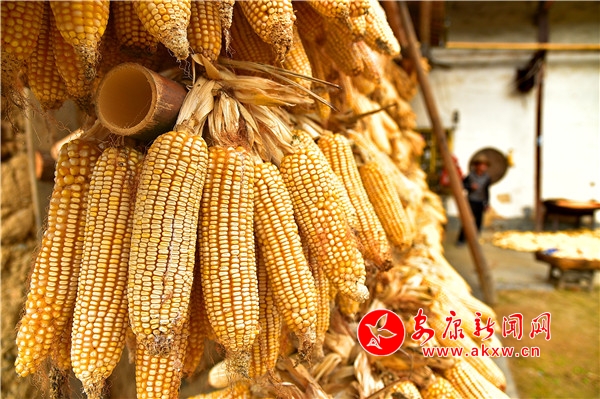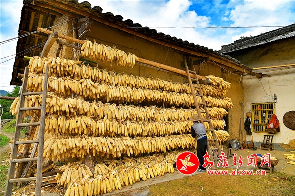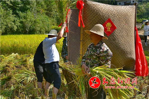 秋日,平利鄉村田園間梯田層層,稻浪滾滾,飽滿的谷穗壓彎了稻桿,放眼望去,遍野鋪金,空氣中也彌漫著淡淡的稻香。在西河鎮女媧山村三里溝原生態水稻田里,人們按照傳統的習俗和方式收割水稻,數十位村民手持鐮刀一字排開,迅速揮舞著手中的鐮刀,將金黃的稻穗割下并整齊的堆放。打谷人則分為兩組,兩人一組,交叉替換的將手中的稻秧在拌桶里反復甩打脫粒,拌谷聲“嘭呲嘭呲”有節奏地作響,聲勢頗為壯觀。與此同時,廣佛鎮松河村李家坡的農家小院已堆滿收回來的苞谷,郭老漢正在將苞谷殼撕開,編成串掛在屋檐下的竹竿上晾曬,金黃的苞谷棒子整齊排列,儼然一幅鄉村小院秋實圖。tdf安康新聞網