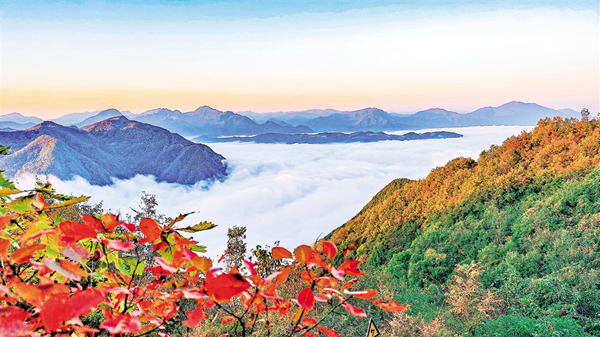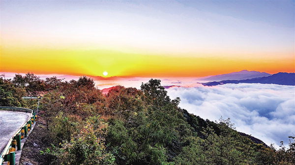 冬日清晨,石泉縣城關(guān)鎮(zhèn)楓樹村壯美的日出云海。楊勇 攝