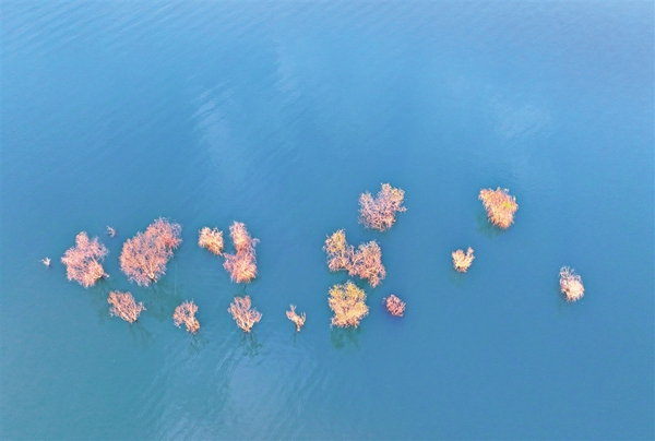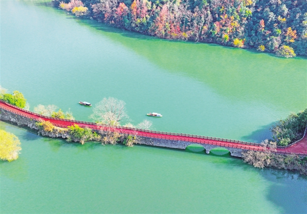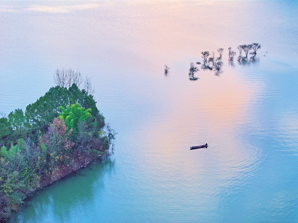 該景區有遠觀景點織女石、鳥語花香玉興島、愛情主題金螺島、休閑勝地翠屏島等三島一遠觀景點。以游船聯絡水上交通,“行船向三島,鷗鷺共遠近”,冬日里的瀛湖更是給游客展現出一幅浪漫、詩意、氤氳的唯美畫卷。(李成寶 文/圖)