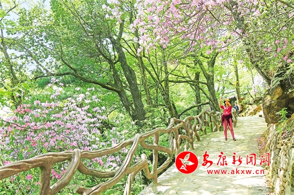 ⑤ 石泉縣云霧山景區(qū)內(nèi)約2000余株野生高山杜鵑次第盛開,吸引游客賞花拍照。譚文昌 攝