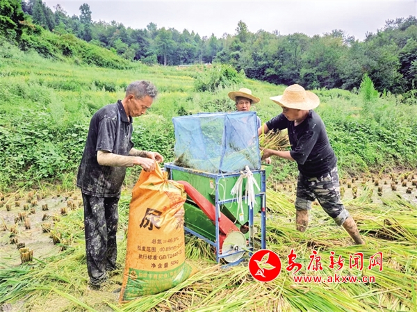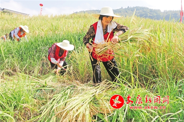 9月3日,平利縣長安鎮中原村“旱改水”項目區的130畝水稻相繼成熟并進入收割期。吳永杰 攝