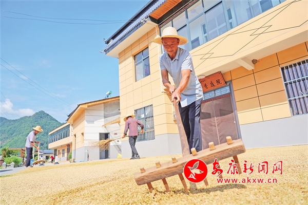 嵐皋縣南宮山鎮桂花村村民利用晴好天氣晾曬谷物。張鑫 攝