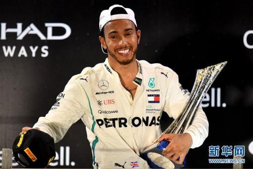 11月25日,漢密爾頓在領(lǐng)獎(jiǎng)臺上慶祝奪冠。 當(dāng)日,2018賽季世界一級方程式賽車錦標(biāo)賽(F1)最后一站比賽在阿聯(lián)酋阿布扎比結(jié)束爭奪,梅賽德斯車隊(duì)英國車手漢密爾頓……