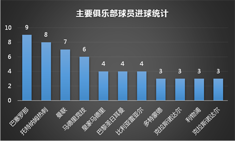 而俱樂部方面,巴塞羅那俱樂部所屬球員打入了9個進球,是世界杯進球數最多的俱樂部,排名第2-4位的俱樂部是托特納姆熱刺(8個)、曼聯(7個)、馬德里競技(6個)。而巴塞羅那與眾不同的地方在于,其他幾個俱樂部是靠著射手榜前列的球員撐起總進球數,而巴薩則是由6名球員完成的9粒進球。