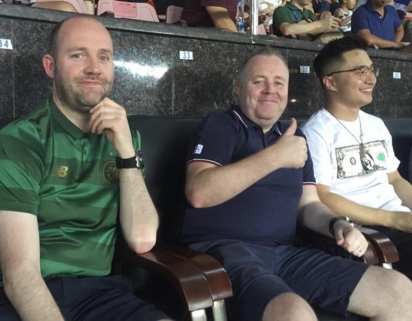 作為首屆恒大中錦賽冠軍,希金斯成功晉級決賽后心情大好。他表示自己與這項國際頂級賽事十分有緣,希望今年也能奪冠。希金斯隨后直奔天河體育場,與廣州恒大足球隊隊長鄭智親切會面并聊了起來。據了解,希金斯是鄭智的球迷,這次在廣州,恰好斯諾克中錦賽的賽程與恒大中超聯賽疊加,一對老友有幸重聚。鄭智表示,很高興與希金斯會面,自己經常在電視上看到希金斯打球,祝愿他這次恒大中錦賽能夠最終奪冠。希金斯“投桃報李”,也祝愿恒大足球奪得聯賽八連冠。隨后,希金斯和朋友一起坐上了主席臺,觀看當晚廣州恒大3比0擊敗大連一方的比賽。
