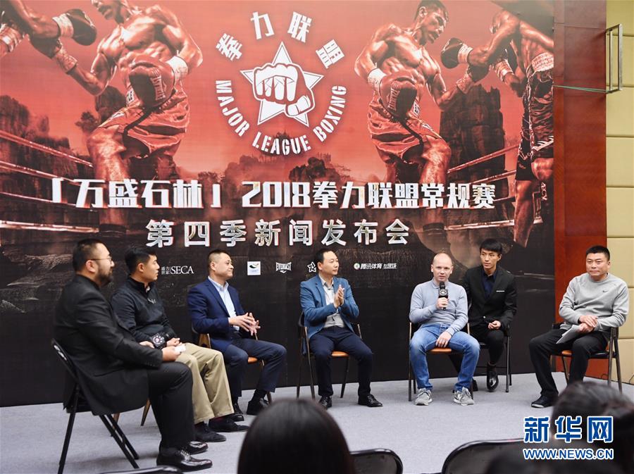 ↑11月16日,俄羅斯拳擊協會競賽部部長、兩屆奧運會拳擊冠軍阿列克謝·季先科(右三)在新聞發布會上發言。 當日,中國重慶2018拳力聯盟常規賽第四季新聞發布會暨中國職業拳擊萬盛高峰論壇在重慶萬盛經開區舉行。 新華社記者王全超攝VUz安康新聞網