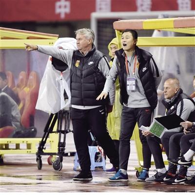 希丁克和中方教練組長孫繼海 新華社發