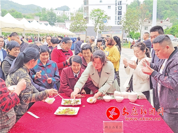 比賽中還設置了群眾品鑒環節,60多道精心制作的美味佳肴讓參與群眾一飽口福。紅升社區居民汪德玉說:“我們縣河是個山清水秀的好地方,舉辦美食大賽這是第一次,能吸引各個地方的游客來品嘗我們縣河的味道,特別是辣子雞,做得很好。”