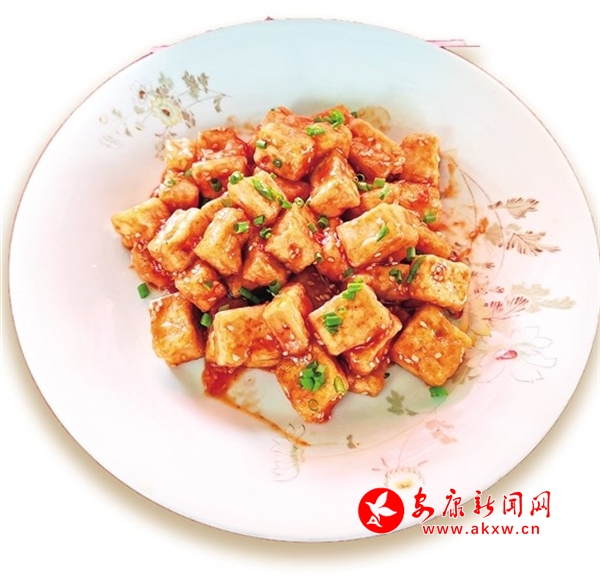 “黃金豆腐卷”的造型猶如一個藝術品,看似孔雀開屏,紅、白、黃、綠多色相間,看一眼就讓人嘴饞;“豆腐丸子”菜名取其形態,一口咬下去,味覺的矜持在瞬間崩塌,只有無窮滋味在口中回蕩; “荷花豆腐”看似蓮蓬,豆腐潔白如芙蓉,色澤悅目,口感爽滑軟嫩。繡球豆腐、荷花豆腐、臘肉豆腐蒸鮰魚、醬燒豆腐、菊花豆腐、槐花豆腐、吊罐豆腐燉土雞等一道道細膩綿滑、清香鮮美、香味濃郁的佳肴頗受青睞、備受好評。