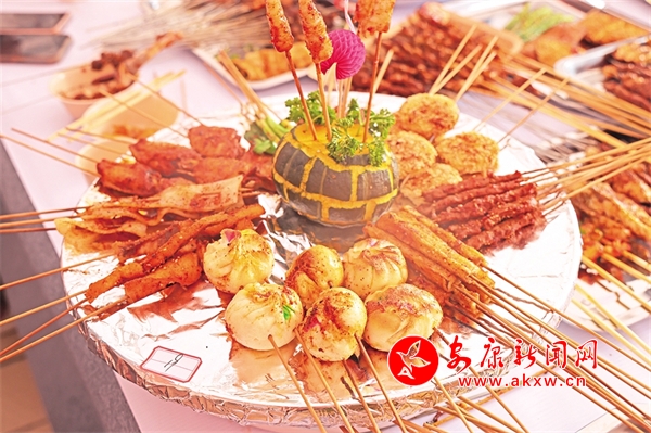 紅艷艷的牛肉、嫩滑的羊肉、青翠的蔬菜……空氣中彌漫著肉香、香料和炭火的混合氣息,參賽者們個個精神抖擻,有的切肉、有的串菜、還有的在調制秘制醬料。隨著主持人一聲令下,火焰瞬間點燃,炭火撲面而來,肉串在火焰中翻滾,表面逐漸變得金黃酥脆,油脂滴落在炭火上“滋滋”作響,誘人的香氣四散開來。參賽者端出新鮮出爐的烤肉,現場的陣陣歡呼一波未平一波又起。