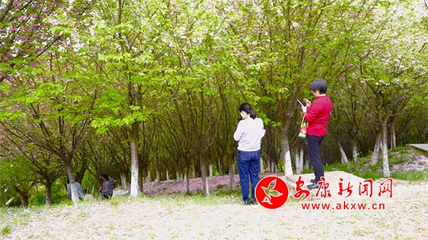 游客們駐足觀賞,紛紛用手機記錄美景。據了解,龍崗公園櫻花花期將一直持續至四月中旬。