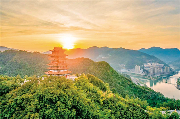 晨起追云,來到郭家梁玻璃觀景臺(tái)上遠(yuǎn)眺,漢江如游龍蜿蜒向東,紫陽山城在云霧中若隱若現(xiàn),恍若仙人執(zhí)筆的寫意水墨。若遇上雨后初霽的清晨,山嵐與晨曦相互交織,更顯空靈縹緲。